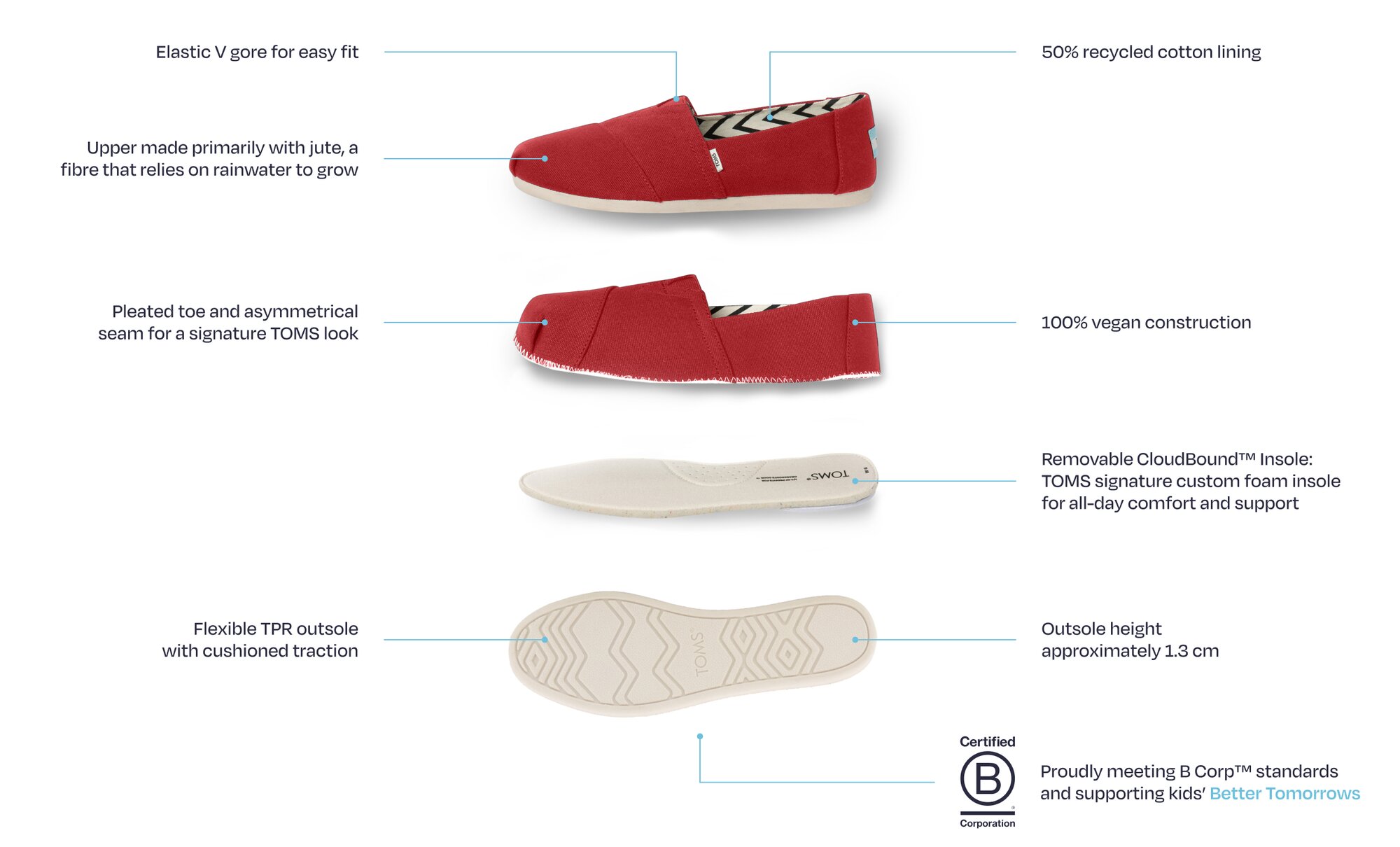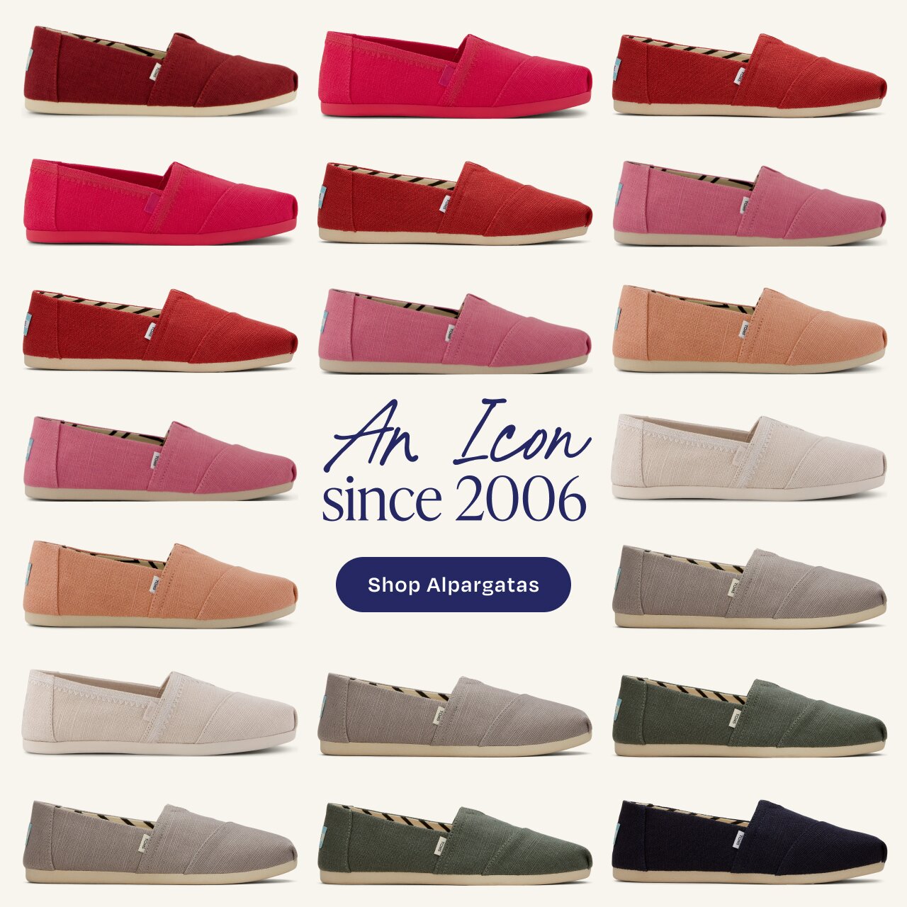 Founded in Los Angeles in 2006, TOMS began with a simple belief: that a single pair of shoes could make a meaningful difference - using business to improve lives. Inspired by traditional Alpargata shoes worn in Argentina, our founder reimagined this classic espadrille for a modern world: a comfortable slip on, designed for everyday life.