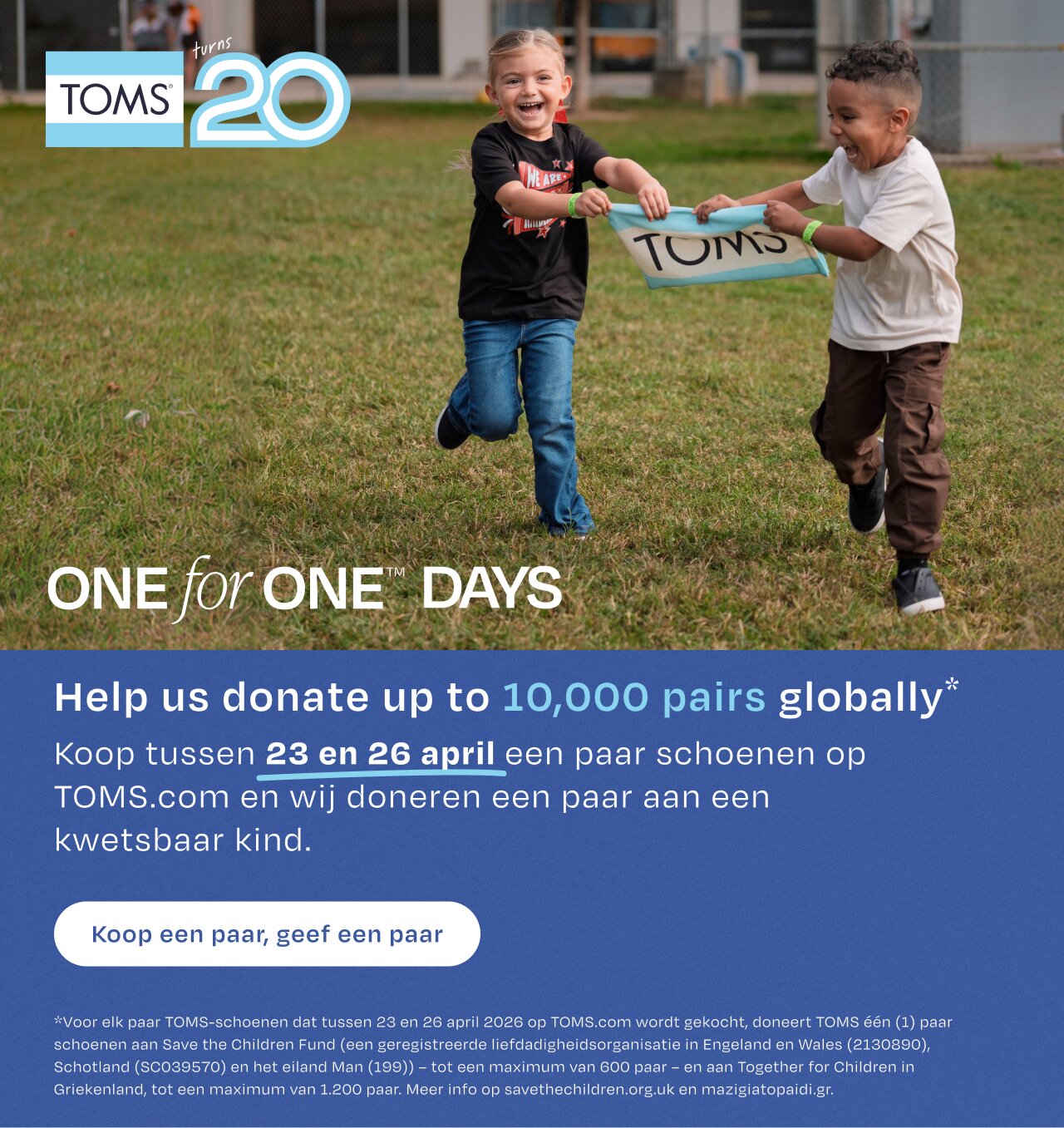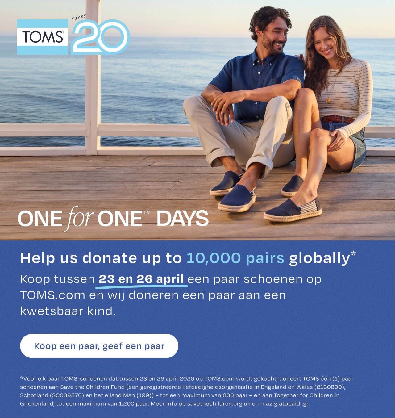 Wir feiern 20 Jahre TOMS – aber ehrlich gesagt geht es um mehr als nur uns. Hilf uns, weltweit bis zu 10.000 Paar zu spenden*